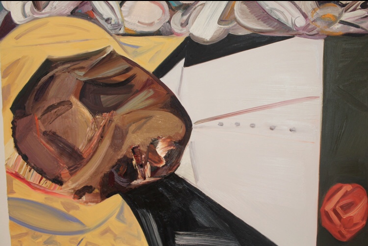 The painting is an abstract depiction of Emit Till’s corpse. To understand the significance of the piece it’s important to know the history behind the boy being portrayed. He was killed in 1955 by a group of white men for allegedly whistling at a white woman. The men who committed this heinous act received little to no punishment. They lynched Emit then dumped him in a river, his body was so mutilated that his remains were unrecognizable to his own mother. Emit’s mother chose to have an open casket funeral to show the brutal reality of the black experience in the South. This gesture was one of the catalysts that helped spark the Civil Rights Movement.