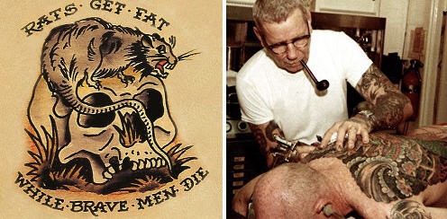 Sailor Jerry seemed to embody all these aspects. His designs were tailored from his naval experience and his travels to the Far East. When He opened up shop in Honolulu Hawaii he happened to be at the right place at the right time and was able to capitalize on the sailors looking to earn this right of passage. He was working just before the bombing of Pearl Harbor, and would go on to tattoo many of the sailors who pass through Hawaii. Sailor Jerry’s style became synonymous with the bravest generation the World has seen, World War II Veterans. Ironically his style originates from traditional Japanese tattoo art, he even corresponded with Japanese Master Tattooers during the war.